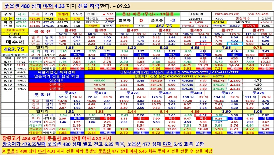 풋옵션 480 상대 야저 4.33 지지 선물 하락한다. – 09.23