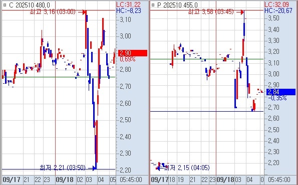 3) 선물의 상승으로 확인 시 콜옵션 야고 회복, 풋옵션 야저 붕괴 확인하고