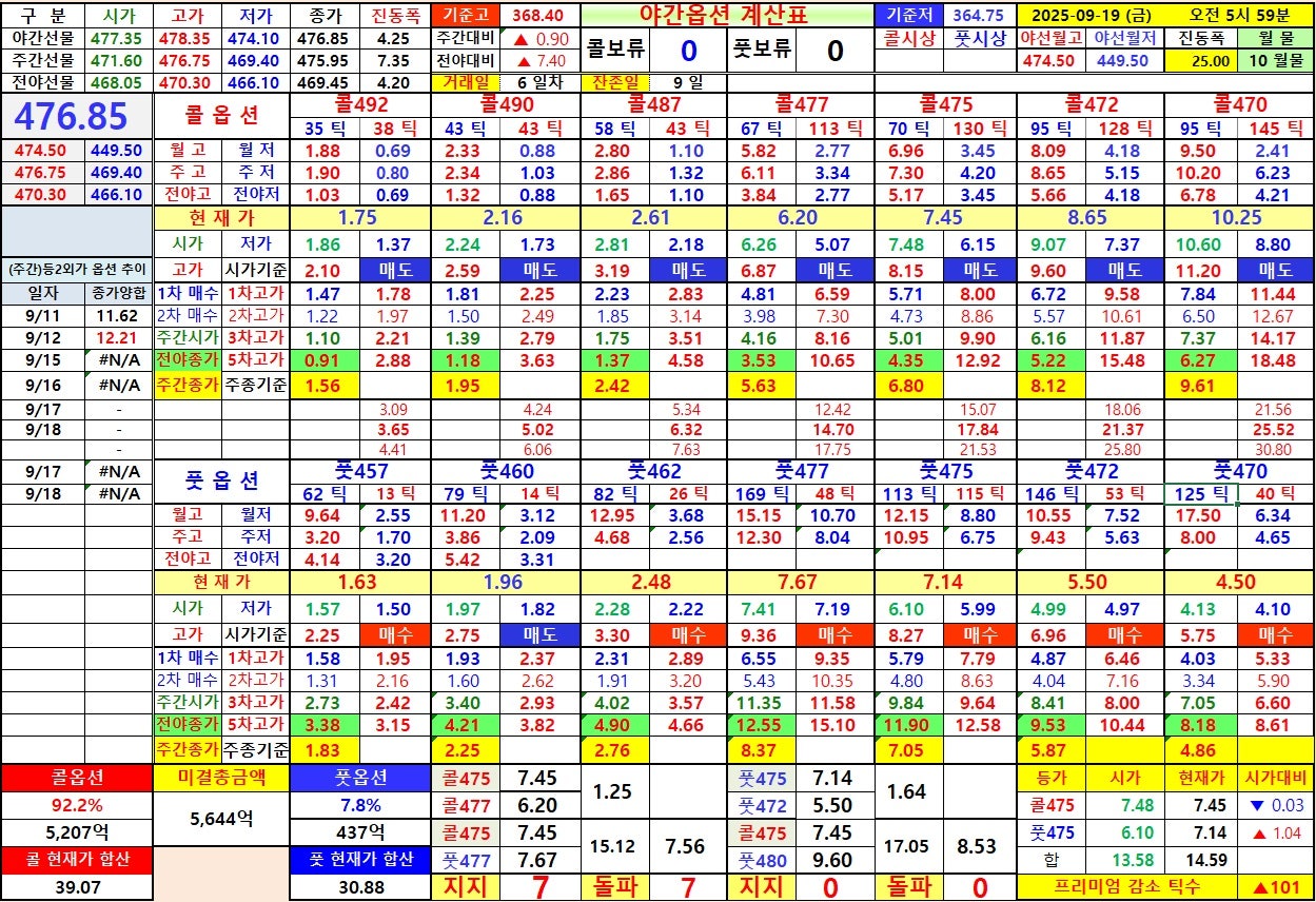 6) 야고 478.35 일때, 양 477 교차 미도달, 콜옵션 475 상대 야고 8.27 회복 못함, 콜옵션 472 상대 전고 9.43