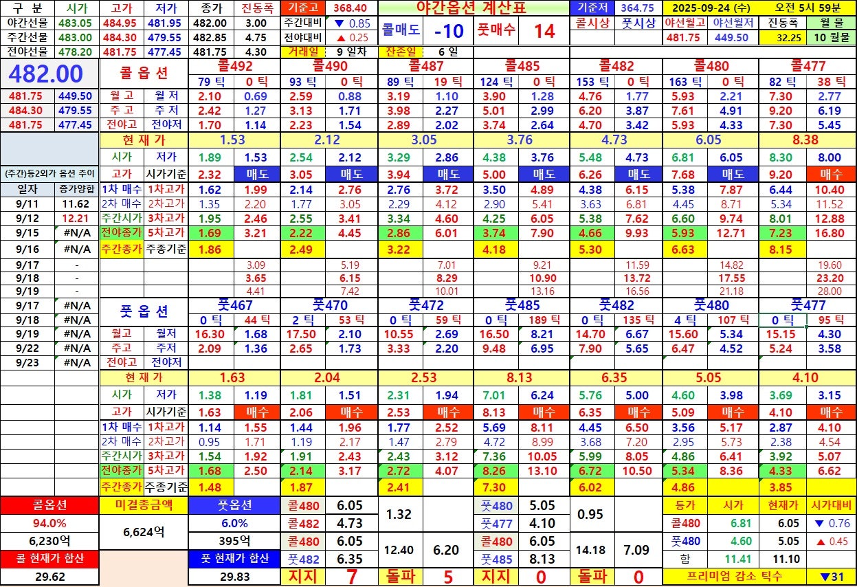 2) 선물 야간장 종가 482.00 로 마감하였음으로 양 480 기준으로 확인