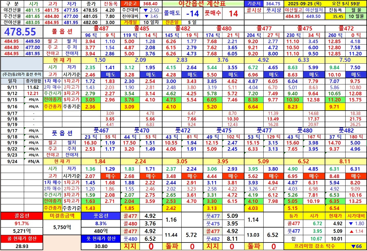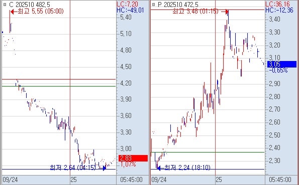 5.50 붕괴 → 풋옵션 480 상대 전저 3.65 까지