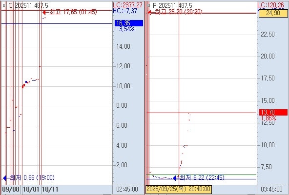 14.30 붕괴 → 풋옵션 492 상대 야저 13.60 까지