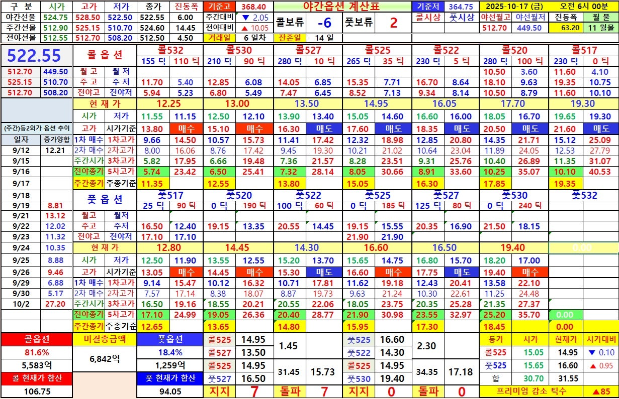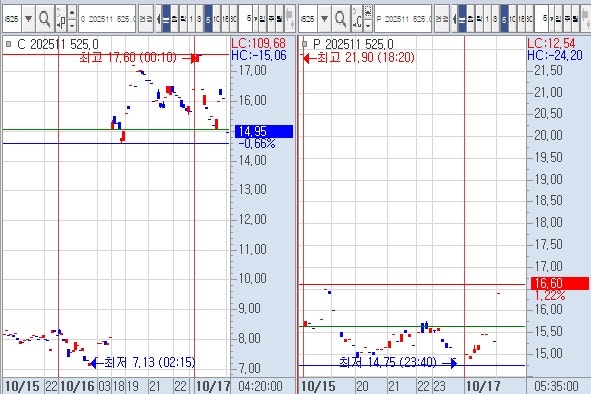 15.35 붕괴 → 풋옵션 525 상대 야저 14.60 까지
