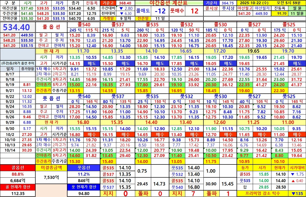 2) 선물 야간장 종가 534.40 으로 마감하였음으로 양 535 기준으로 확인