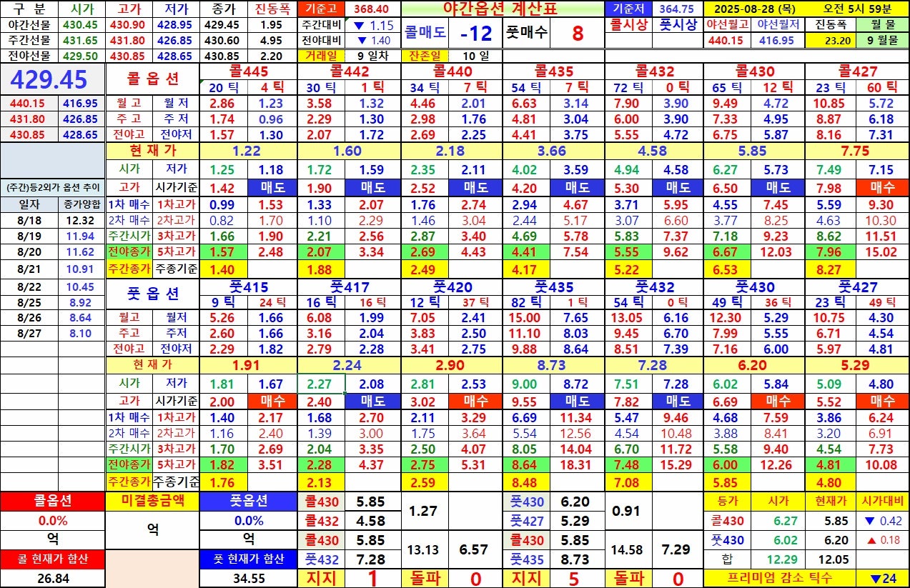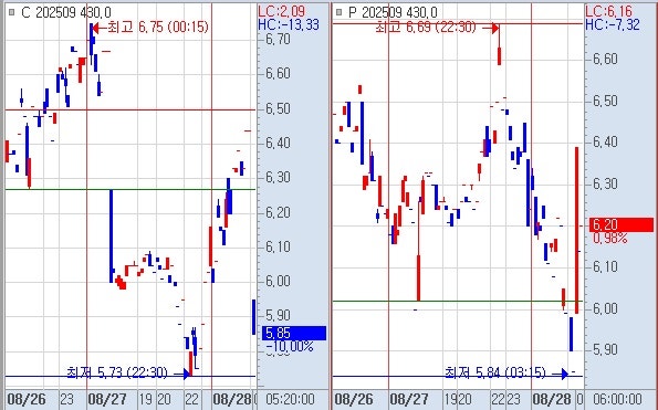 6.00 붕괴 → 풋옵션 432 상대 야고 5.30 까지